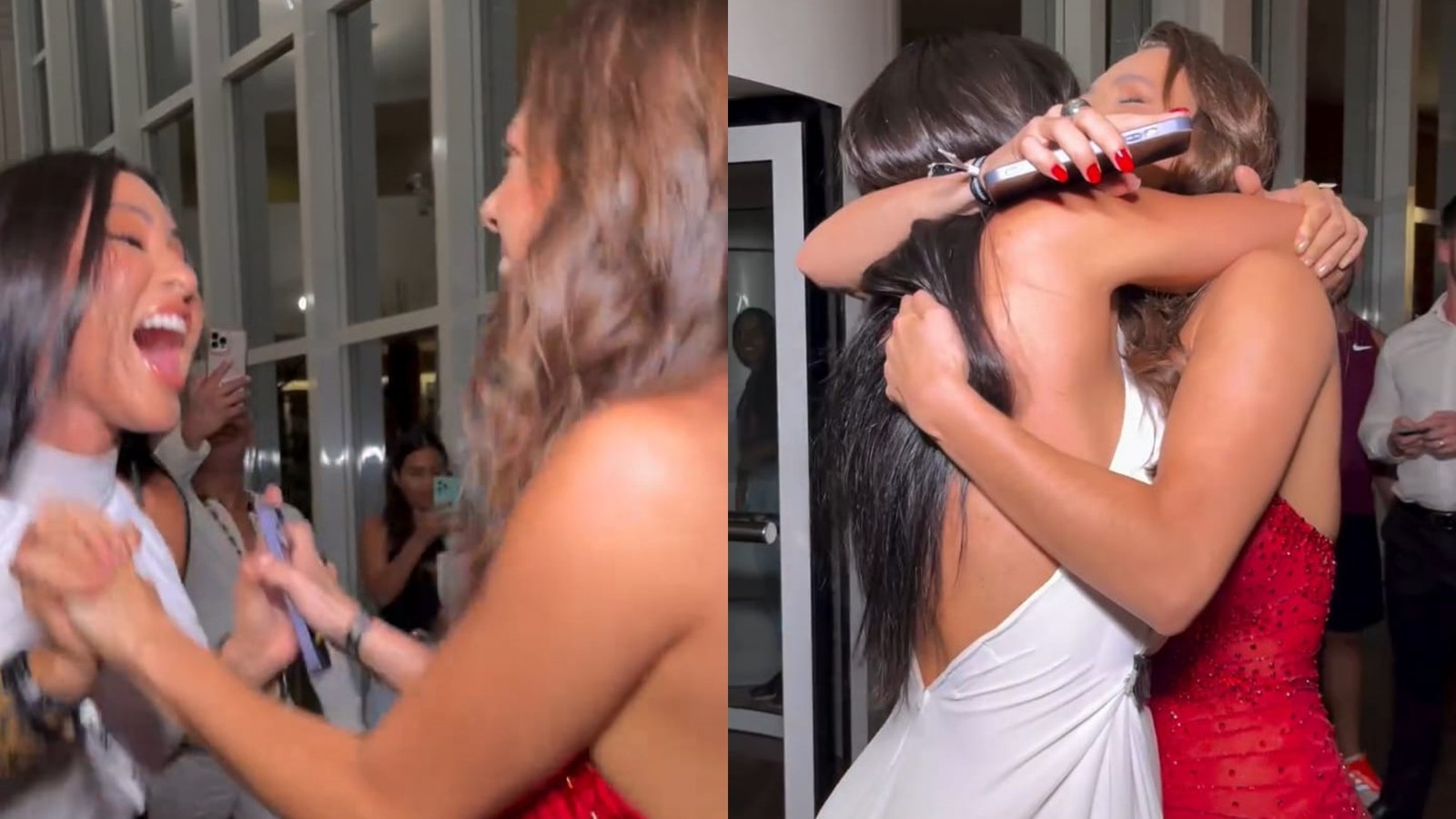 O registro do emocionante encontro foi compartilhado no Instagram, onde as duas aparecem pulando e se abraçando assim que se encontraram. Beatriz estava deslumbrante em um vestido vermelho, enquanto Isabelle optou por um look todo branco. A troca de elogios não poderia faltar, com Beatriz expressando sua saudade por Isabelle e ambas admirando a beleza uma da outra.